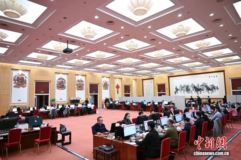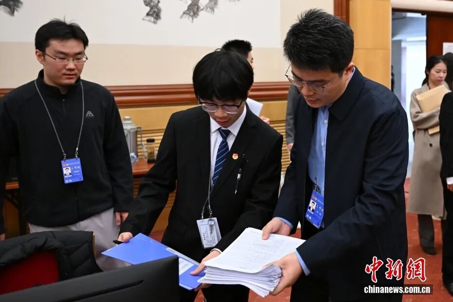 3月10日,北京,104届齐邦人年夜4次聚会文牍处议案组任务职员正在校正、阐明代替修议。 中新社记者 田雨昊 摄