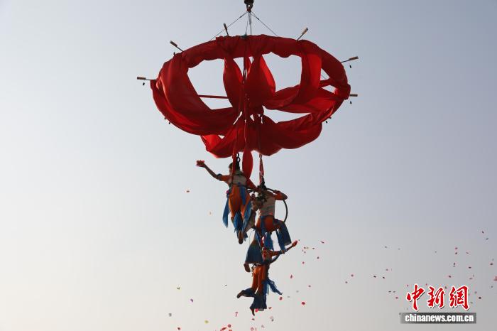 图为“祸马迎秋会”上纯技球友会体育官网上演“天女集花”。记者 韩辉 摄